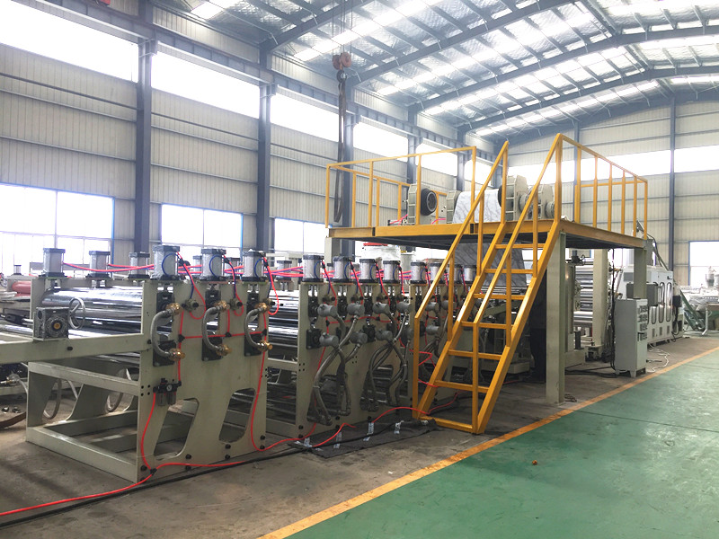 Το Qingdao EASTSTAR ολοκληρώθηκεΓραμμή παραγωγής πάνελ PE αλουμινίου-πλαστικούαποτελείται από έναν εξωθητήρα μονής βίδας SJ150×33, μια σύνθετη μήτρα, ένα κάλυμμα τριών κυλίνδρων, ένα ξετύλιγμα σε πολλαπλή όψη αλουμινίου, έναν θερμικό πλαστικοποιητή δύο κυλίνδρων, έναν θερμικό πλαστικοποιητή οκτώ κυλίνδρων, μια βάση ρολού οδηγού ψύξης έξι κυλίνδρων, έναν πλαστικοποιητή, έναν διακόπτη τεσσάρων κυλίνδρων. Ένα σύστημα PLC επιτρέπει τον έξυπνο έλεγχο ολόκληρης της γραμμής.
