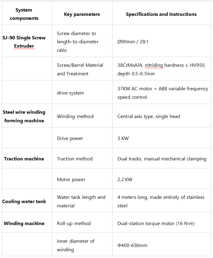 Η EASTSTAR είναι επαγγελματίας κατασκευαστής γραμμών παραγωγής πλαστικών διέλασης. Η γραμμή παραγωγής εξώθησης εύκαμπτων σωλήνων με ενισχυμένο σύρμα από χάλυβα PVC υψηλής απόδοσης έχει σχεδιαστεί ειδικά για την παραγωγή σωλήνων ενισχυμένων με σύρμα από χάλυβα υψηλής αντοχής και αντοχής στην πίεση. Η γραμμή παραγωγής ενσωματώνει έναν εξωθητή υψηλής ροπής SJ-90 και ένα σύστημα περιέλιξης και επίστρωσης από χαλύβδινο σύρμα ακριβείας, διασφαλίζοντας την τέλεια σύνθεση από χαλύβδινο σύρμα και PVC, παράγοντας σωλήνες που είναι ανθεκτικοί στην πίεση, δεν επιπεδώνουν και έχουν μεγάλη διάρκεια ζωής. Τα βασικά εξαρτήματα χρησιμοποιούν νιτρωμένο χάλυβα 38CrMoAlA και ηλεκτρικά εξαρτήματα από διεθνείς μάρκες όπως η ABB και η Siemens, διασφαλίζοντας μακροπρόθεσμη σταθερότητα του εξοπλισμού. Επικοινωνήστε τώρα με την EASTSTAR για προσαρμοσμένες λύσεις και προσφορές!